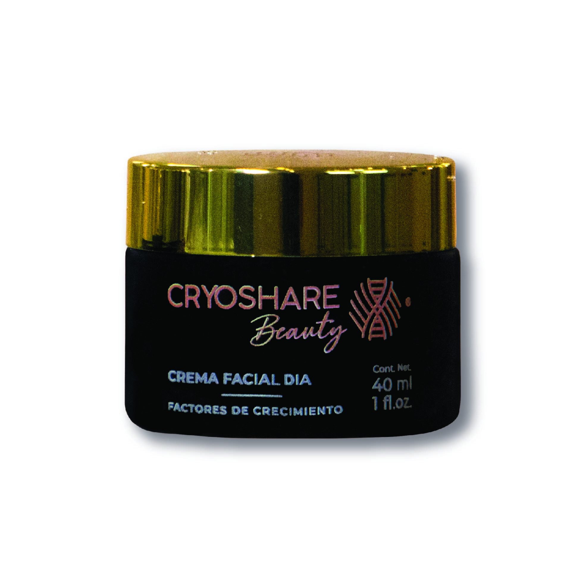 - Coloque Crema de Día CRYOSHARE BEAUTY® del tamaño de un guisante sobre la palma de la mano y aplique en el rostro distribuyendo con las yemas de los dedos, dando pequeños golpes simulando el llamado efecto lluvia, desde la frente, mejillas, nariz y barbilla, hágalo desde el centro de rostro hacia afuera en líneas verticales.
